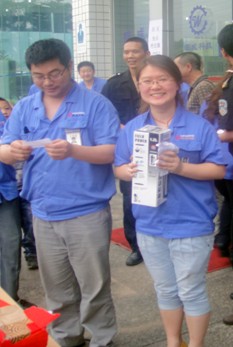 “Yes,我中了”,激動而開心的聲音傳來,那質(zhì)樸而純真的笑容感染了大家,大家用熱烈的掌聲表示祝賀,共同分享著這份幸運,幸運一等獎經(jīng)過幾次的抽取最終被銷售部的同事領(lǐng)回家啦。
